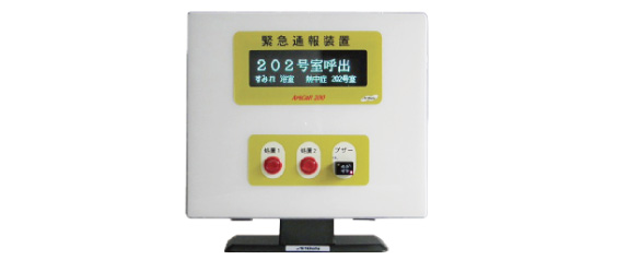 ヘルパーコール(400)は、病院・介護施設に適しています。 ヘルパーコール(760)は、中規模施設、グループホーム向けです。施設内の居室、トイレ、脱衣室、廊下で無線式の押しボタンを押せば表示盤に漢字・平仮名・英語・番号(760は数字のみ)で表示します。また、各種センサーと連動できる端子が付いています。取付は、壁面取付または据置も可能です。