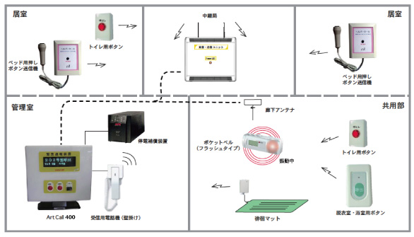 ヘルパーコールを使用する高齢者介護施設の構成図