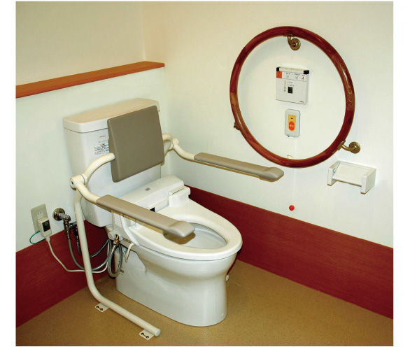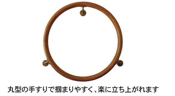 健心和は、丸型の手すりです。手すりを従来の形から大きく変え、掴まりやすくするために丸くしました。丸いからどんな方でも使いやすく、どこにでも掴めるので、楽に立ち上がれます。トイレなどの使用に最適です。病院、特別養護老人ホームなどの多数の施設で、ご利用いただいております。